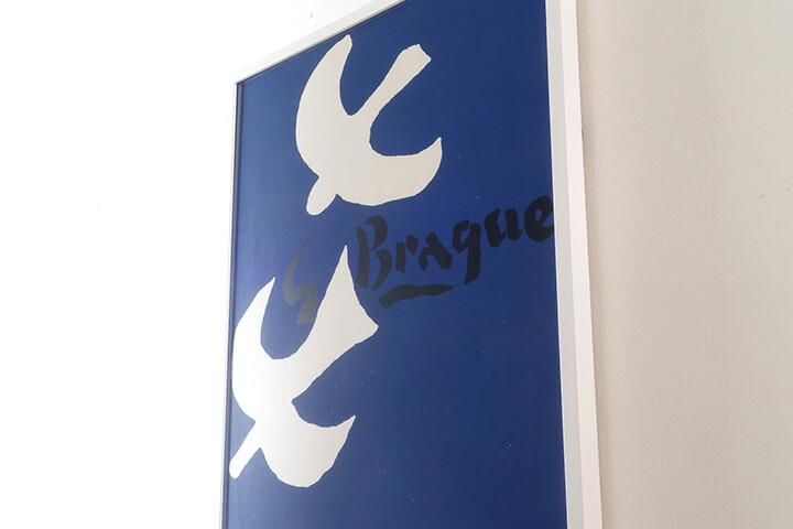 HOME POSTER Georges Braque / Belser Monographie 1972 0円 H722mm×W527mm×D24mm 1972年に開催されたBraqueの回顧展『Leben und Werk』のポスターです。 カラーシルクスクリーンプリント。 Georges Braque <1882年〜1962年> ジョルジュ・ブラック。フランスの画家。第一次大戦前はマティスに「小さなキューブ」と評された『レスタックの家々』やキュビズム的作品『家と木』などがあり、ピカソとも製作活動を行った。戦後はキュビズム絵画と決別し落ち着いた静物画を多数製作。 SOLD OUT この商品について問い合わせる