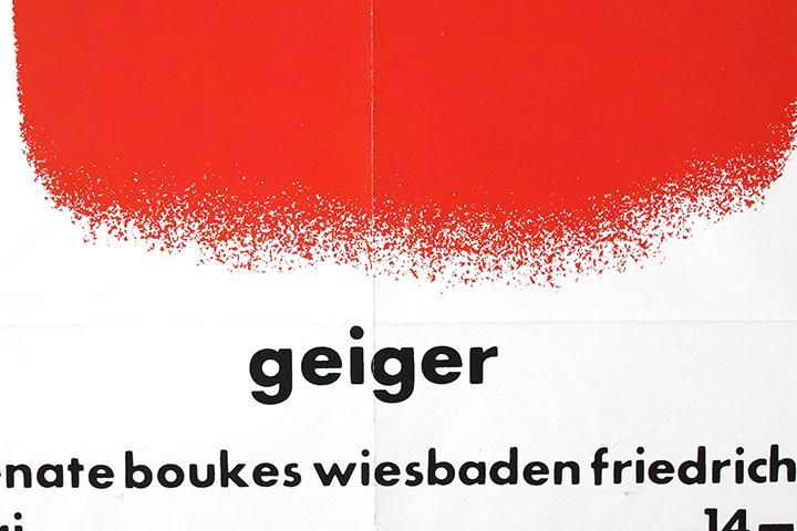 HOME POSTER Rupprecht Geiger / Galerie Renata Boukes,Wiesbaden 1963 0円 H630mm×W443mm×D24mm 1963年にドイツ・ヴィースバーデンのGalerie Renata Boukesで開催されたルプレヒト・ガイガー展のエキシビションポスターです。オリジナルデザイン。折れ線がございます。 SOLD OUT この商品について問い合わせる