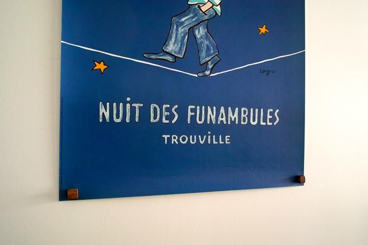 1985年にフランス・トゥルーヴィルで開催された大道芸人のショー『Nuit des Funambules Trouvilles / 夜の綱渡り』の告知ポスターです。こちらはリプロダクトポスターです。