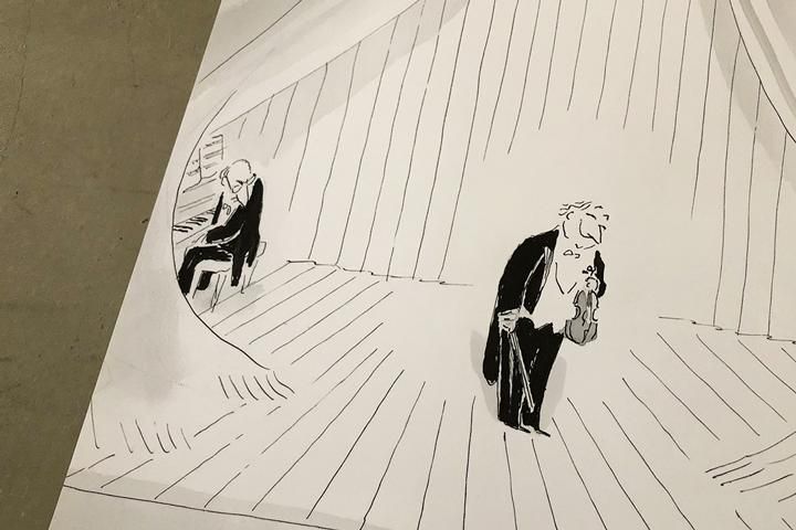 2017年にフランス・パリのGalerie Martine Gossieauxで開催されたフランスの漫画家・イラストレーター Sempéの展覧会“Musiques”のために作成されたエキシビションポスターです。