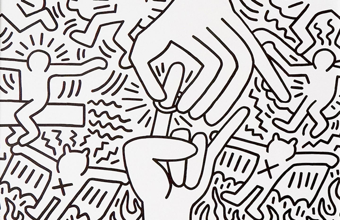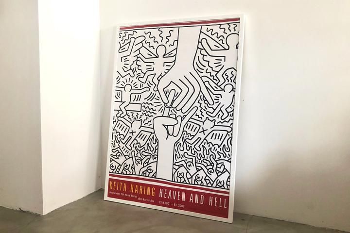 2001年にドイツのZKMの現代美術館で開催されたキース・ヘリングのエキシビション"HEAVEN AND HELL"の告知ポスターです。このポスターでは1985年にキース・ヘリングが製作した特大(約10m×7.9m)の作品"Marriage of Heaven and HELL"の一部が使用されています。