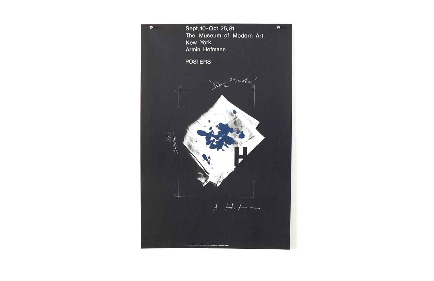 1981年にアメリカ合衆国・ニューヨークのMoMA(The Museum of Modern Art New York)において開催された、スイスのグラフィックデザイナーのアーミン・ホフマンのエキシビションの際に作成されたオリジナルポスターです。印刷はWassermann AG , Basel。オフセットリトグラフプリント。