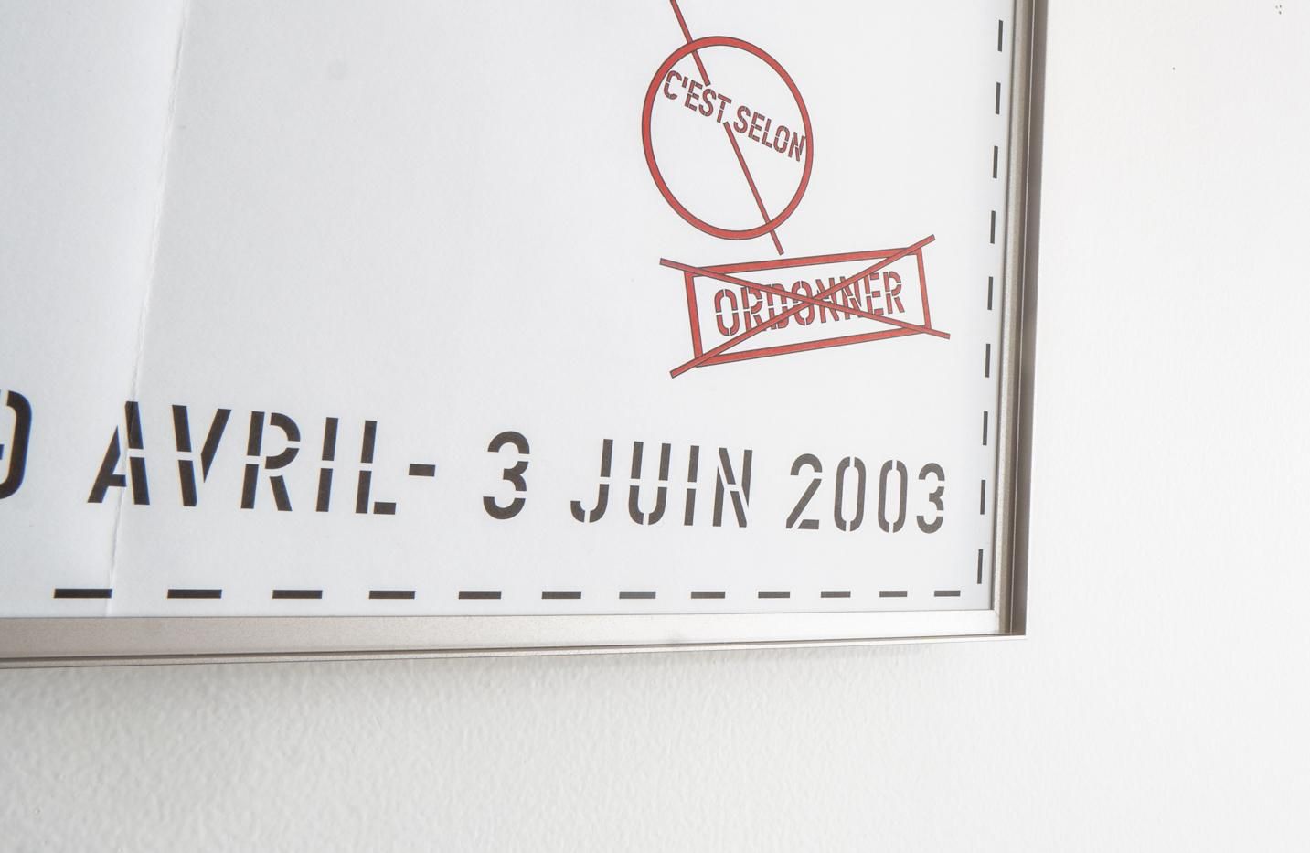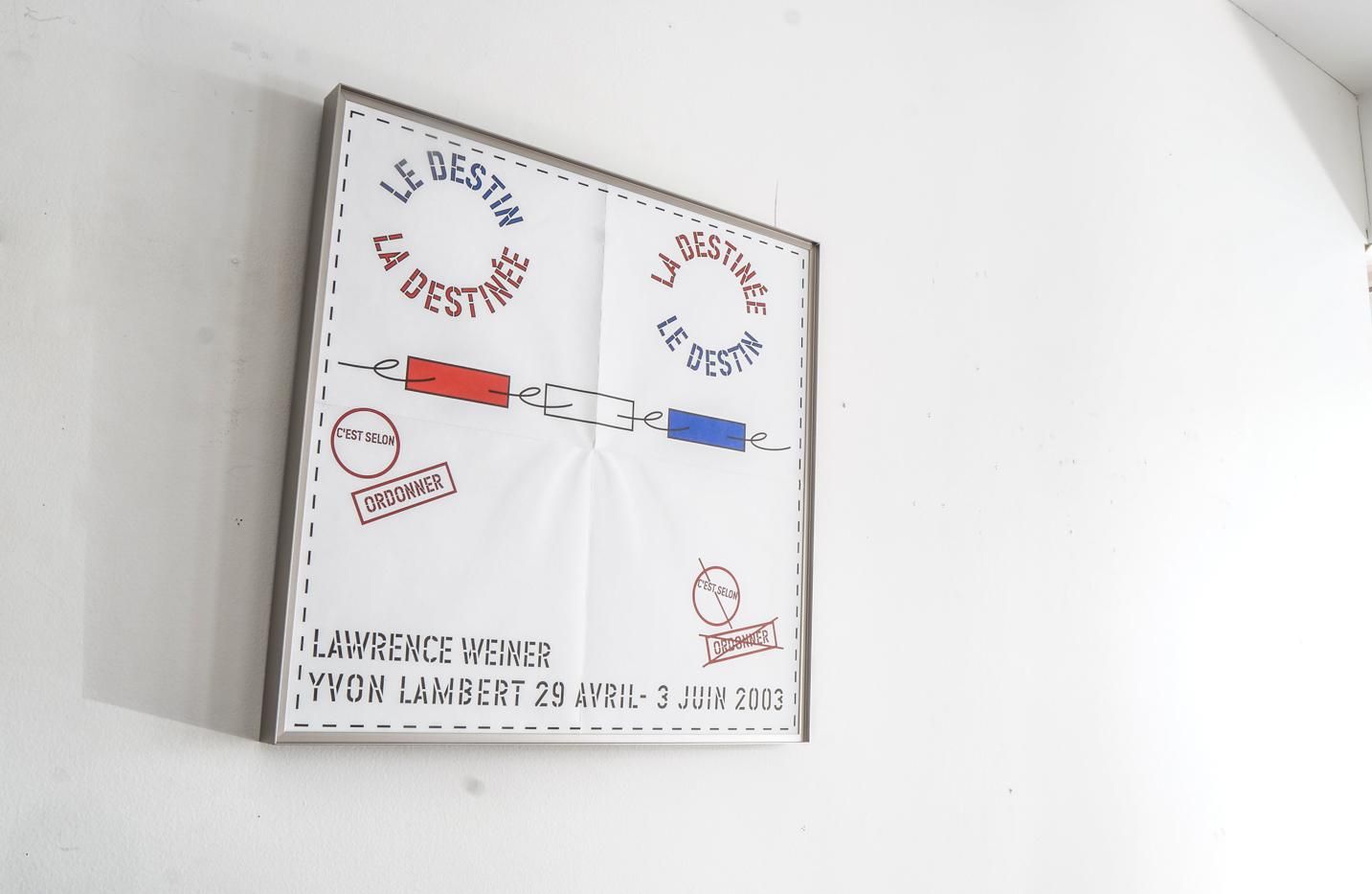 HOME POSTER Lawrence WeinerYvon Lambert 0円 Size:403×403×25(mm) ※アルミフレーム RIM への額装の際のサイズ・価格です。 2003年にフランス・パリのYvon Lambetにおいて開催された 『LAWRENCE WEINER 展』のエキシビションポスターです。折りたたまれて保管されていたため四つ折りの折れ線が見られます。 SOLD OUT この商品について問い合わせる
