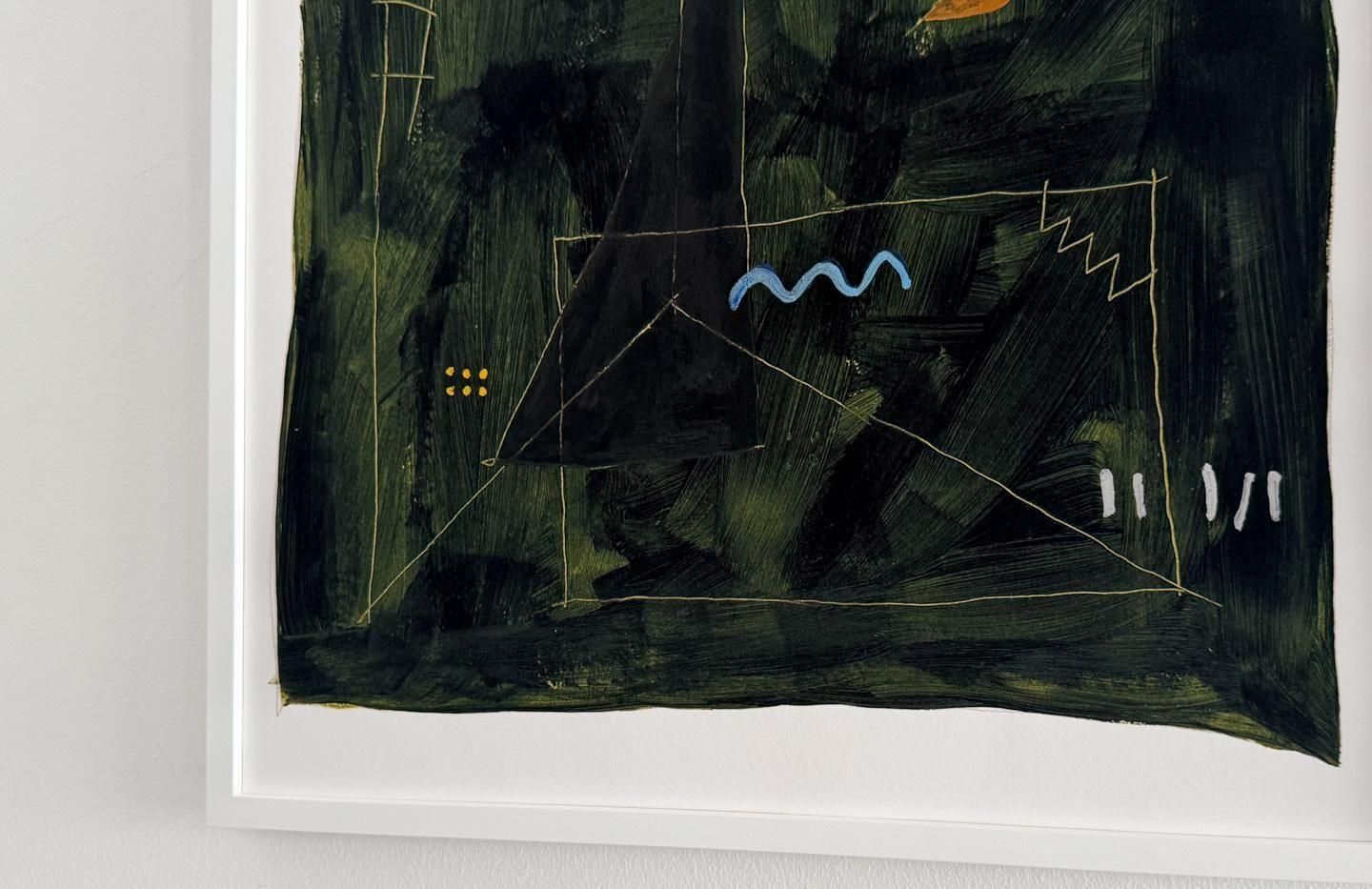 and motivated by its history and urgency. Moving between the tangible and the drawings, her interest lays in the spaces in trans- lation. Visualizing new spaces within the gaps of architectural representation, her work focuses on the intimacy of play. Gestures of spaces are painted in bold, while the lines carve out details that invite multiple perspectives to viewers. The speckles of colors inhabit these spaces as they highlight each territory.