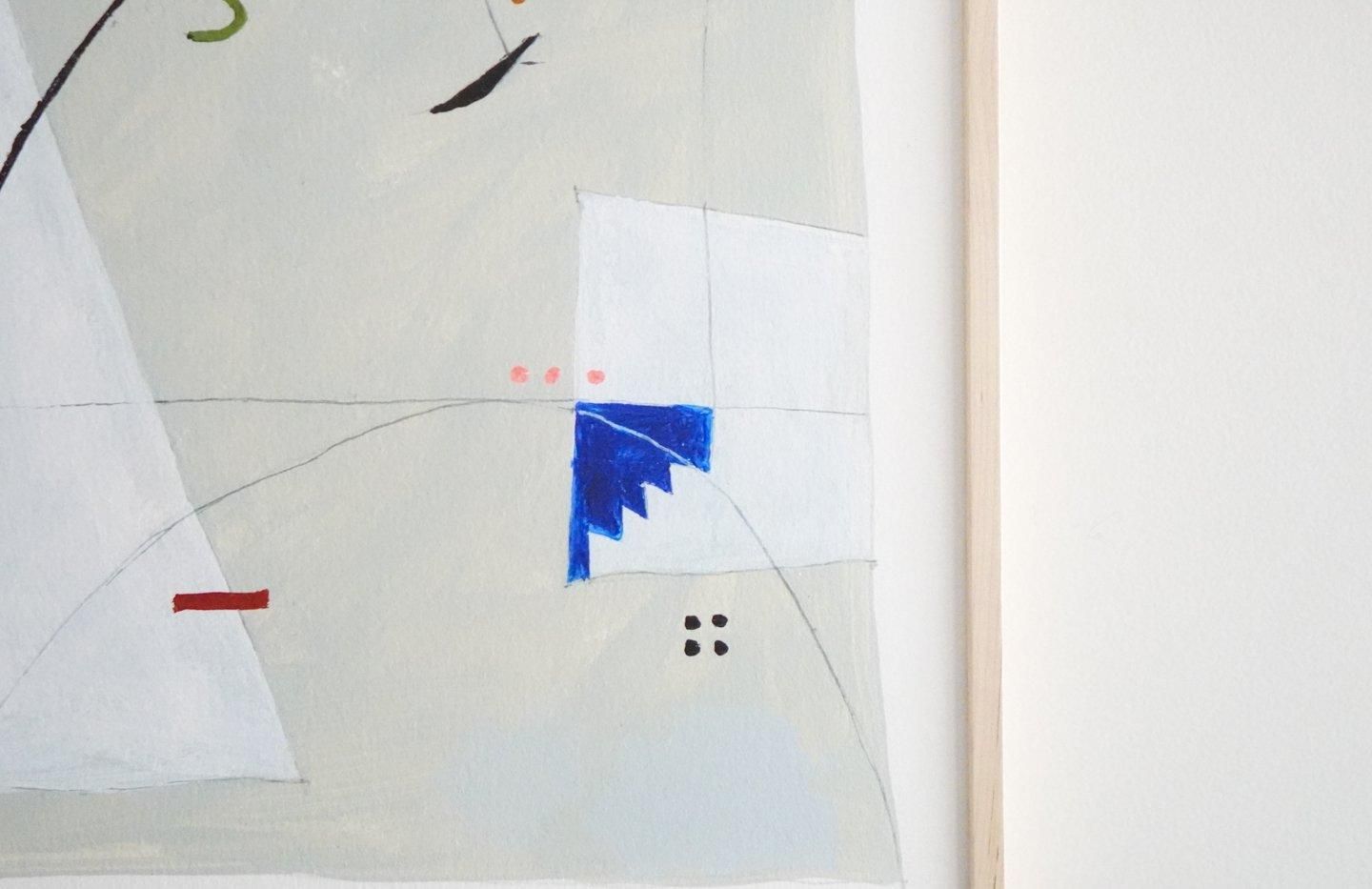 and motivated by its history and urgency. Moving between the tangible and the drawings, her interest lays in the spaces in trans- lation. Visualizing new spaces within the gaps of architectural representation, her work focuses on the intimacy of play. Gestures of spaces are painted in bold, while the lines carve out details that invite multiple perspectives to viewers. The speckles of colors inhabit these spaces as they highlight each territory.