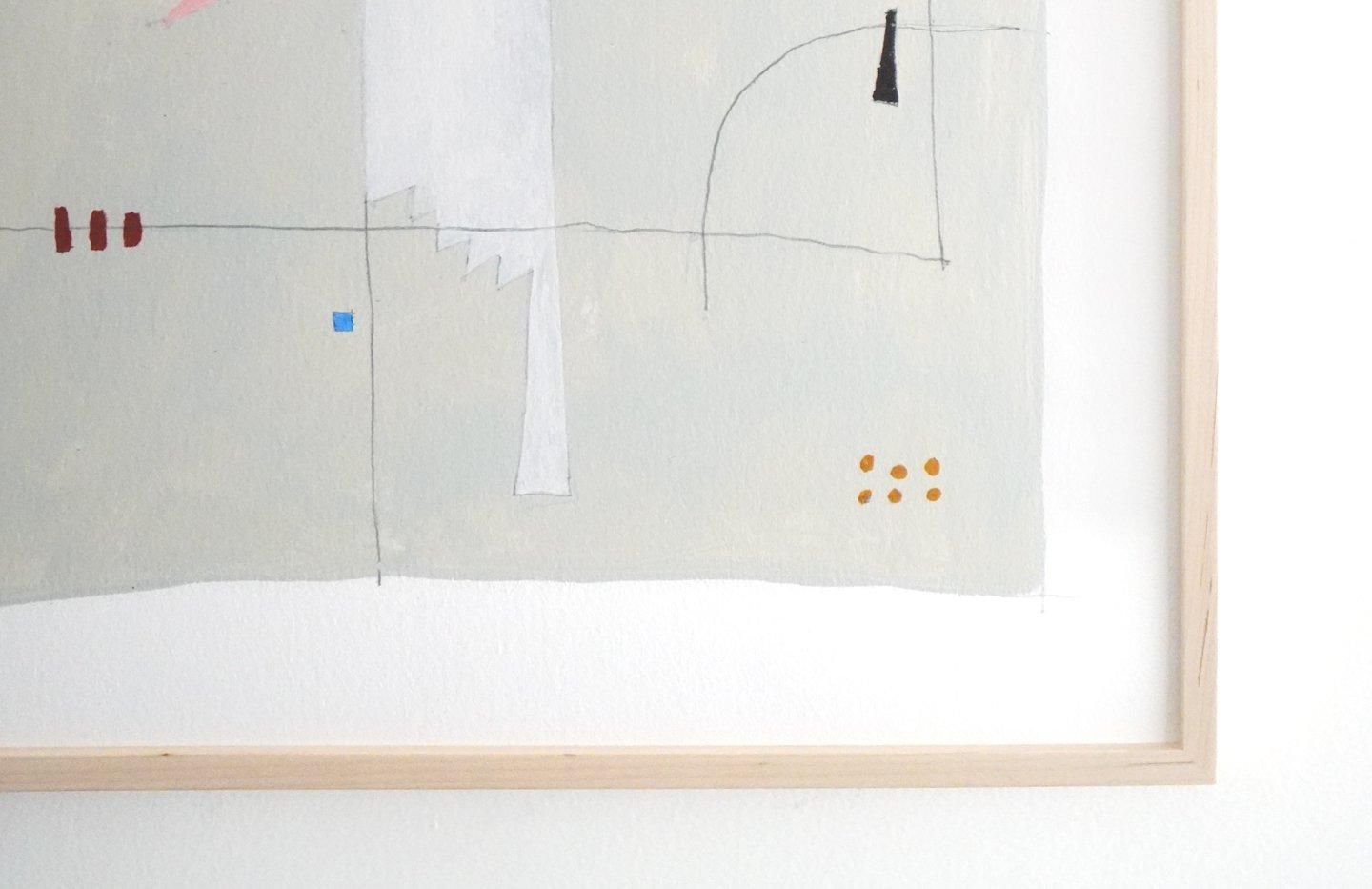and motivated by its history and urgency. Moving between the tangible and the drawings, her interest lays in the spaces in trans- lation. Visualizing new spaces within the gaps of architectural representation, her work focuses on the intimacy of play. Gestures of spaces are painted in bold, while the lines carve out details that invite multiple perspectives to viewers. The speckles of colors inhabit these spaces as they highlight each territory.