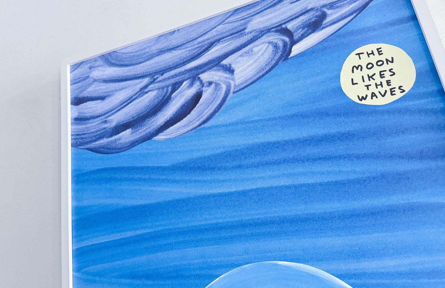 デイヴィッド・シュリグリーが新しくコラージュ技法を活用し、ドローイングで描かれた上に切り絵の要素を取り入れた新しい作品群からポスター化された作品群"Good weather?"シリーズ。そのシリーズのうちの1枚 " The moon "です。
