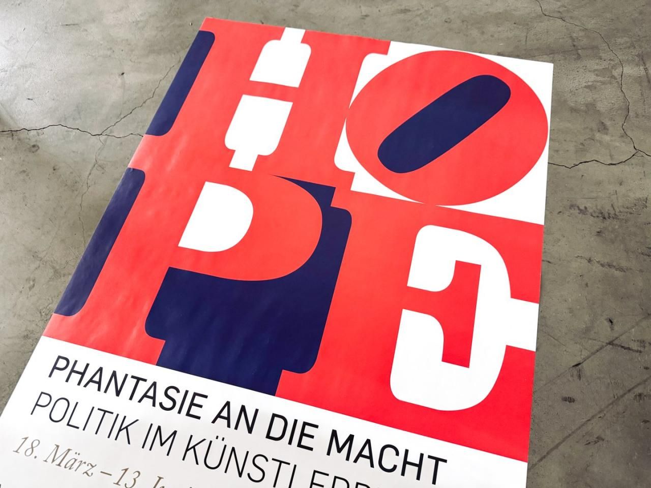 2011年にドイツで開催されたエキシビション" PHANTASIE AN DIE MACHT - POLITIK IM KÜNSTLERPLAKAT - のオリジナルポスターです。モチーフにロバート・