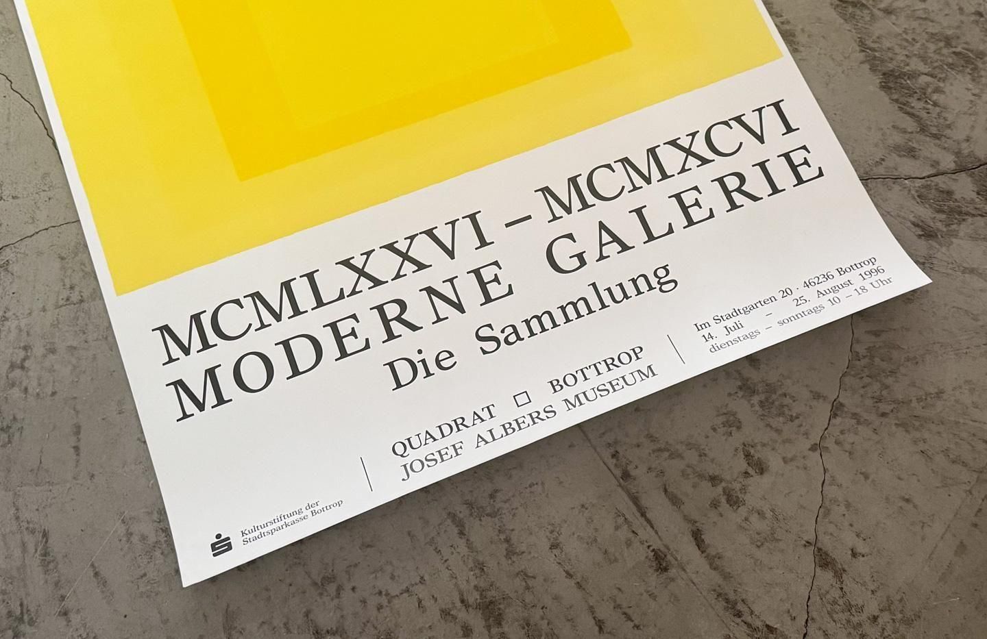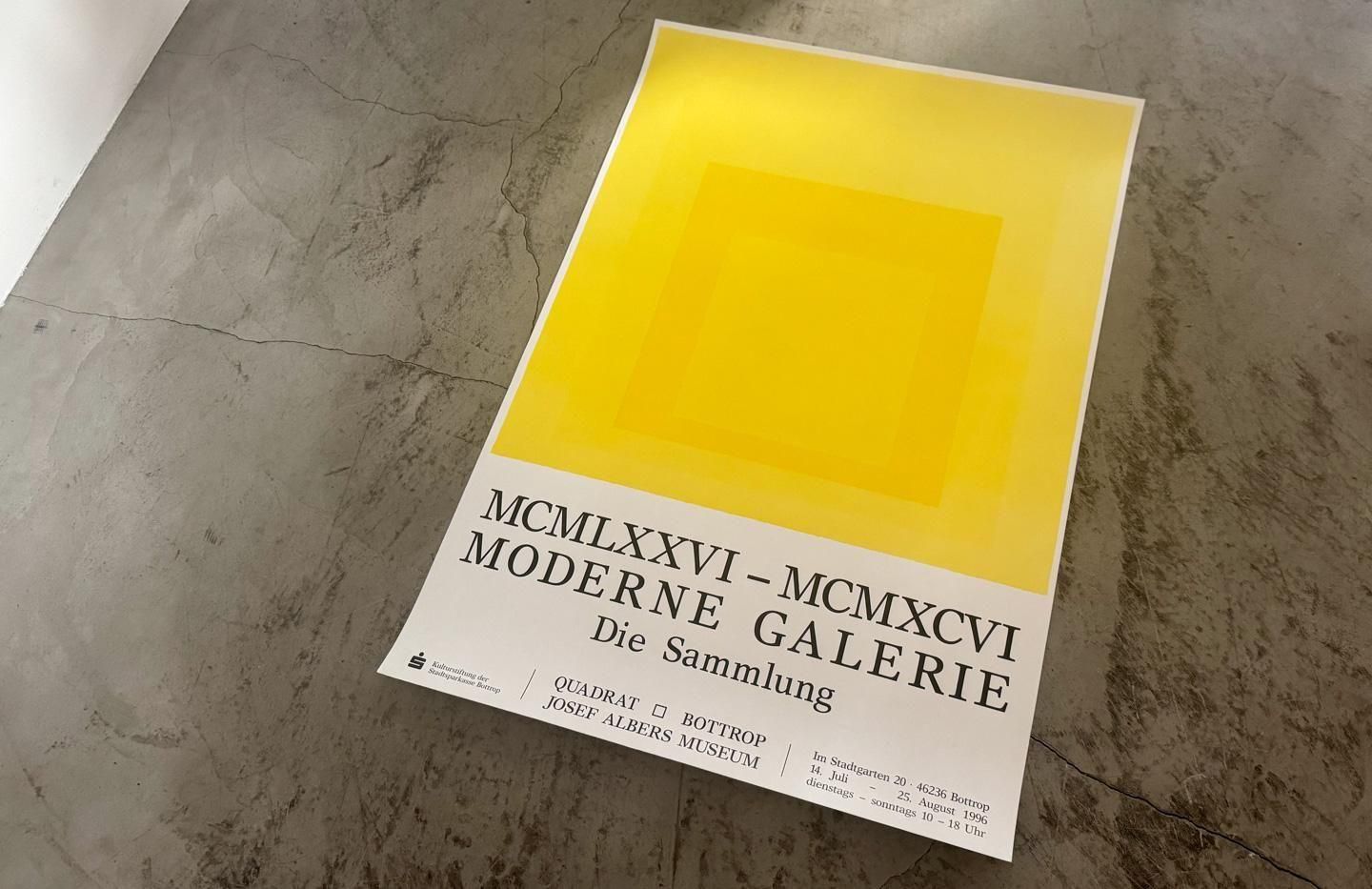 HOME POSTER Josef Albers / QUADRAT Bottrop – Josef Albers Museum 49,500円(税込) Size:822×598(mm) ポスターのみのサイズ・価格です。 1996年にドイツのアルバース美術館において開催されたエキシビション『MCMLXXVI – MCMXCVI MODERNE GALERIE Die Sammlung (1976–1996 モダン・ギャラリー コレクション展)』のオリジナルポスターです。モチーフにはアルバースの《Homage to the Square》がフューチャーされています。 ポスターのみ ポスター + メープルフレーム ポスター + 墨黒フレーム ポスター + ライトグレーフレーム ADD TO CART オプションの値段詳細 この商品について問い合わせる