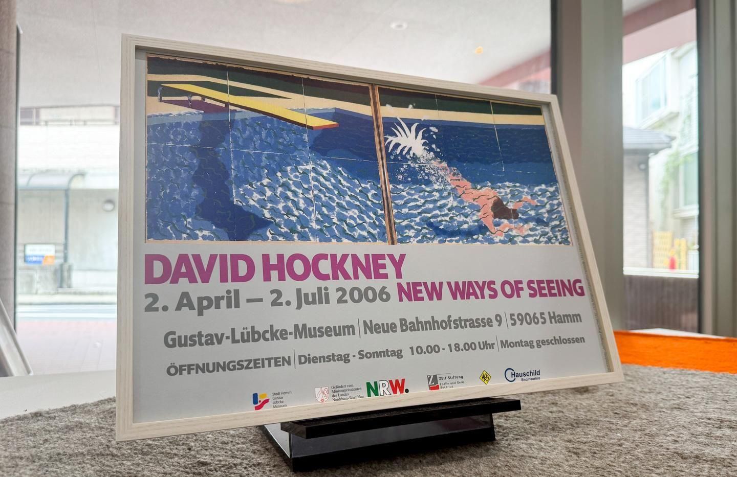 2006年にドイツの美術館 Gustav-Lübcke-Museum (グスタフ=リュプケ美術館)において開催されたDavid Hockney (デイヴィッド・ホックニー)のエキシビション 『NEW WAYS OF SEEING』のオリジナルポスターです。メインイメージとなっている作品は1978年の作品『Le Plongeur』