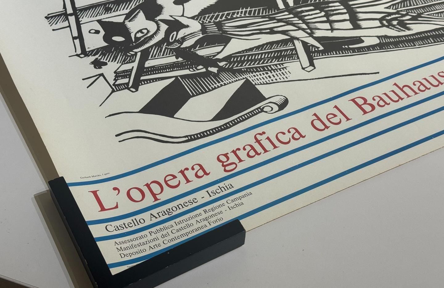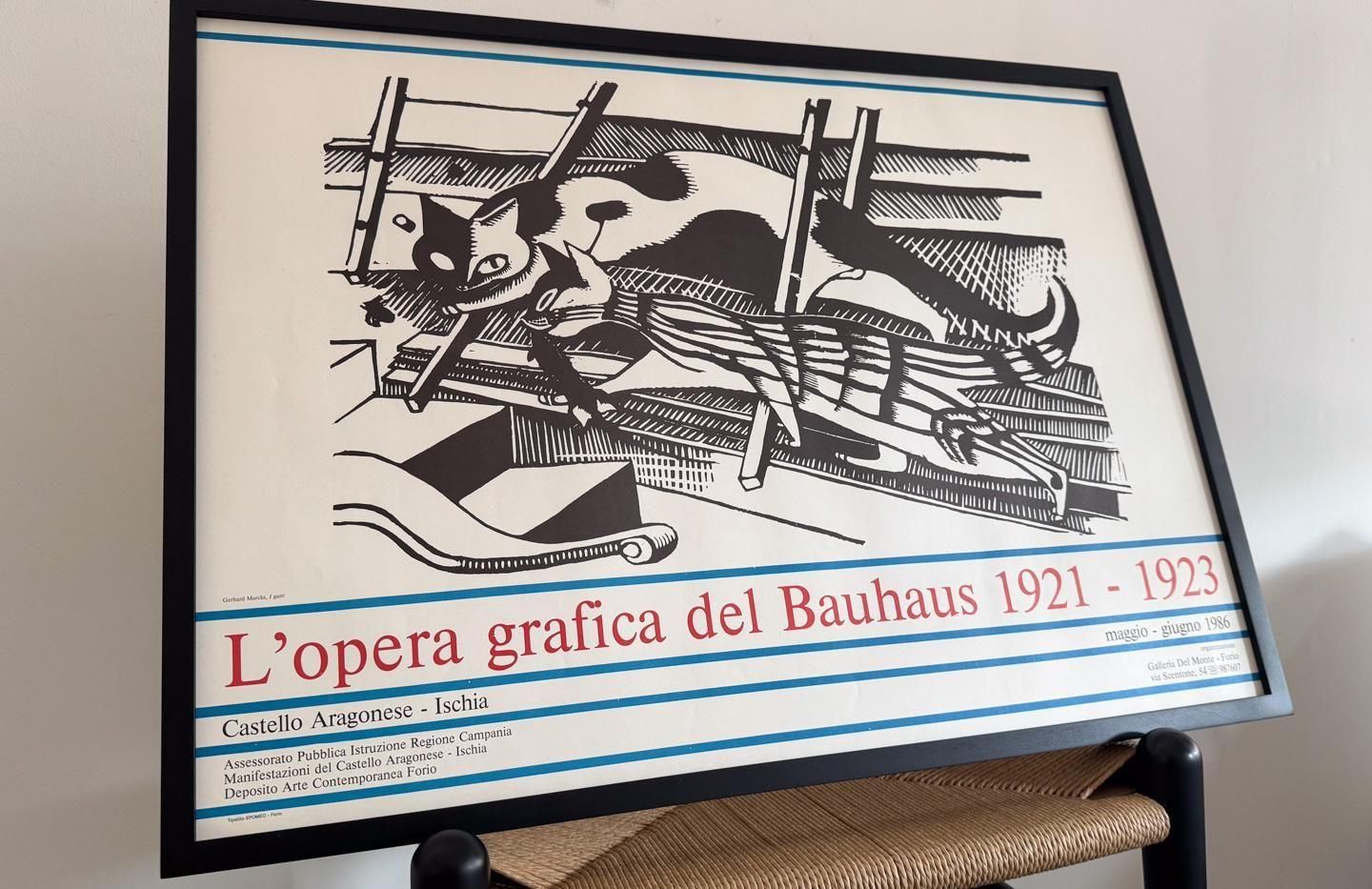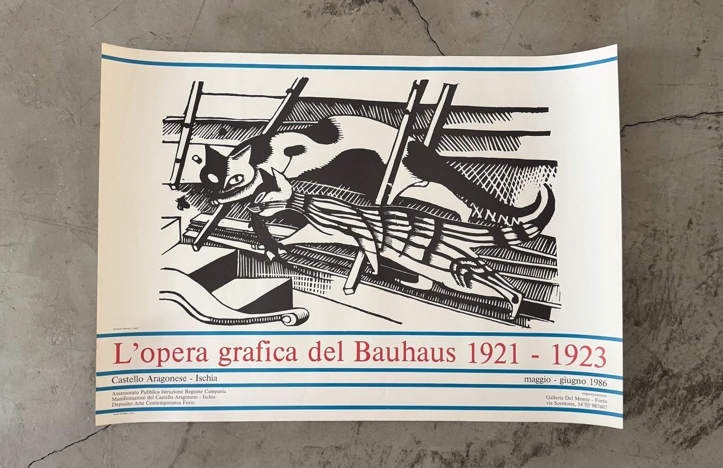 1986年にイタリアで開催されたエキシビション 『L'opera grafica del Bauhaus 1921 - 1923(バウハウスの版画作品)』のオリジナルポスターです。Gerhard Marks の作品 『I gatti (猫たち)』がモチーフとなっております。