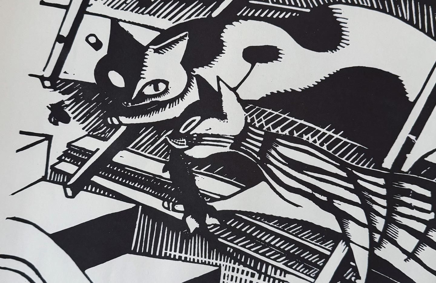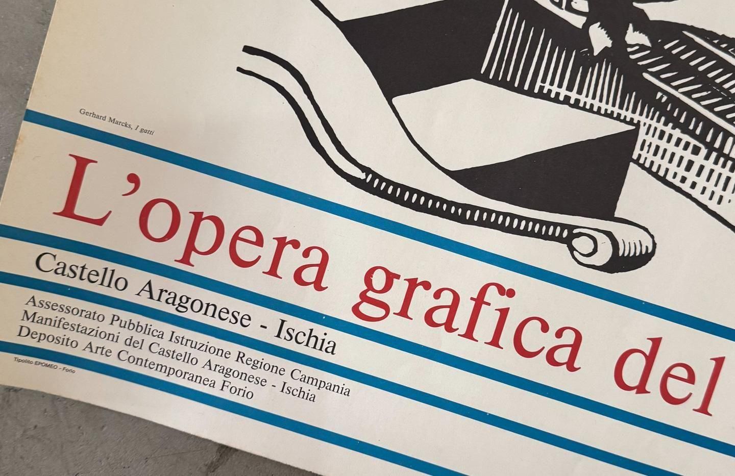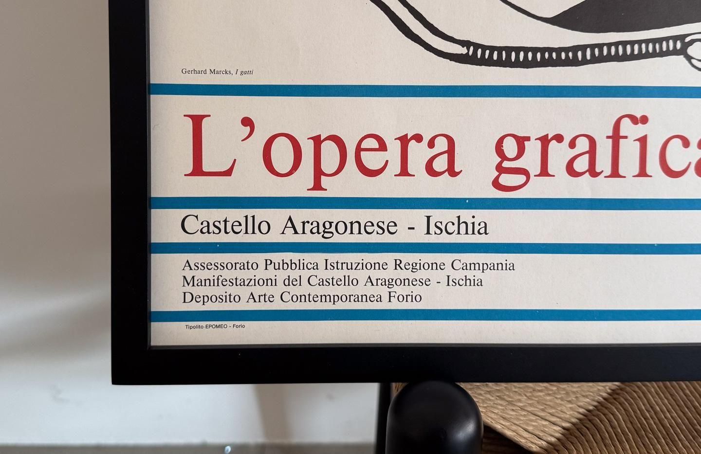 1986年にイタリアで開催されたエキシビション 『L'opera grafica del Bauhaus 1921 - 1923(バウハウスの版画作品)』のオリジナルポスターです。Gerhard Marks の作品 『I gatti (猫たち)』がモチーフとなっております。