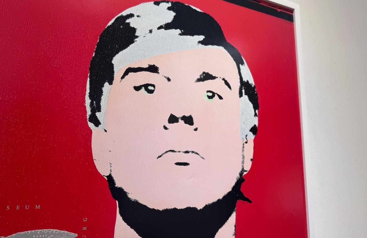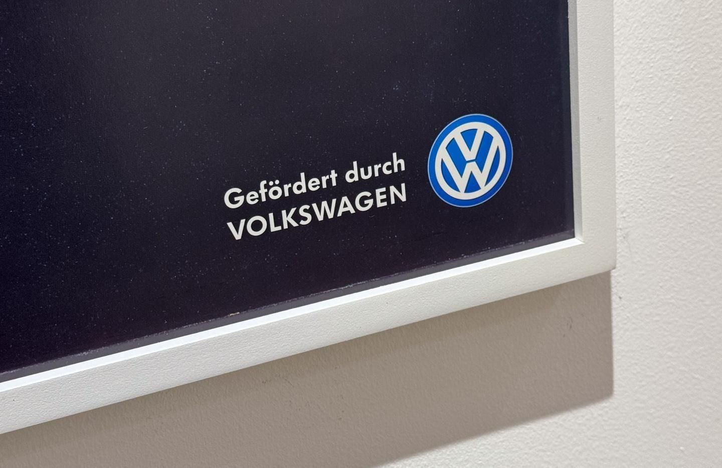 赤地に配されたウォーホル晩年のセルフポートレートをモチーフにデザインされ、右下にはVolkswagenの協賛ロゴが入る当時の仕様です。