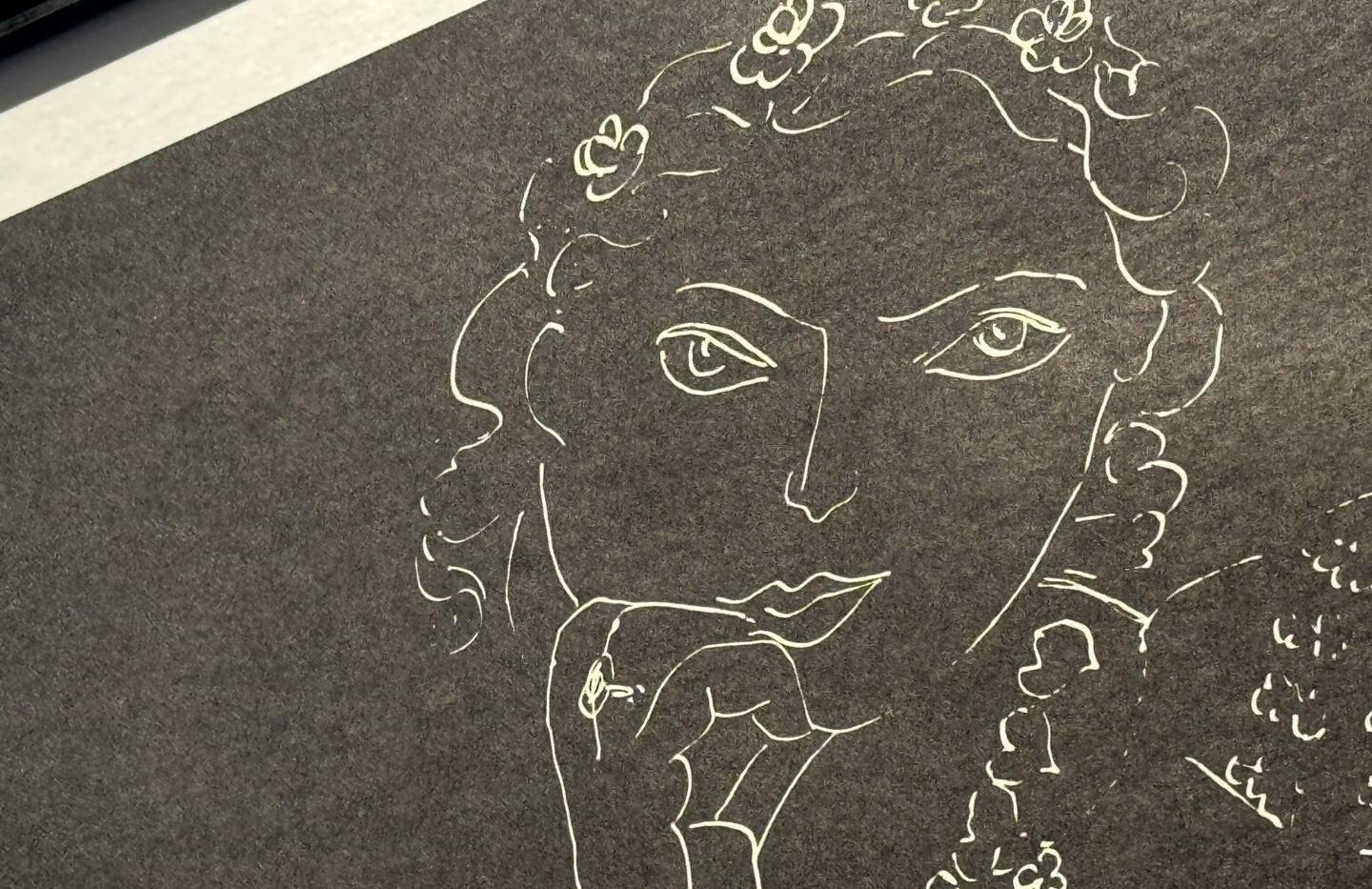 黒地に浮かび上がるのは、マティス晩年のエレガントで軽やかな線描。