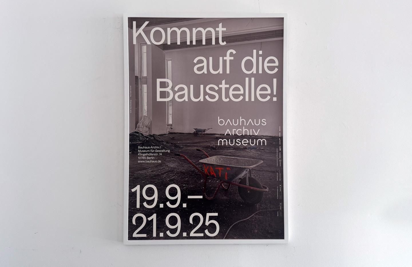 2025年にドイツ・ベルリンにあるBauhaus Archiv ( バウハウス アーカイヴ )おいて開催された『Kommt auf die Baustelle!(建設現場へ!)』の現場見学会の告知ポスターです。Bauhausのアイコン的な建築をモチーフに作成されたオリジナルポスターです。