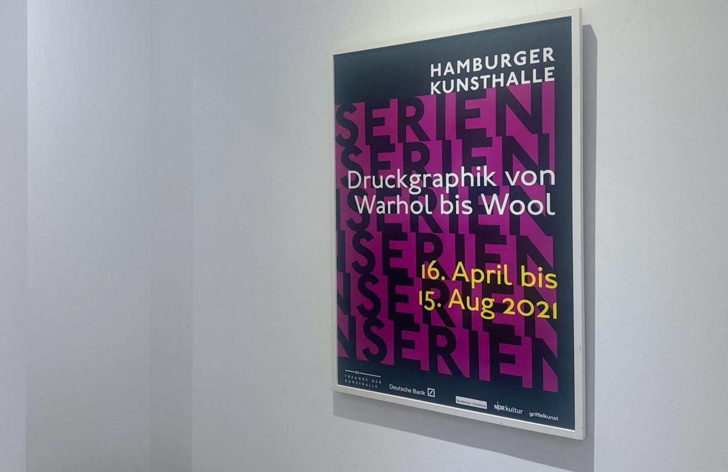 2021年、ドイツのハンブルク美術館(Hamburger Kunsthalle)で開催された『シリーズ ― ウォーホルからウールまでの版画(Serien – Druckgraphik von Warhol bis Wool)』の展覧会にあわせて制作されたオフィシャルポスター。